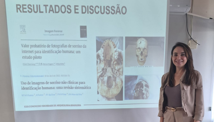 A orientadora e coautora Claudia Parellada reforçou que a integração entre Arqueologia e Perícia Forense é indispensável para investigações completas, garantindo precisão, contexto e respeito no tratamento dos remanescentes humanos.